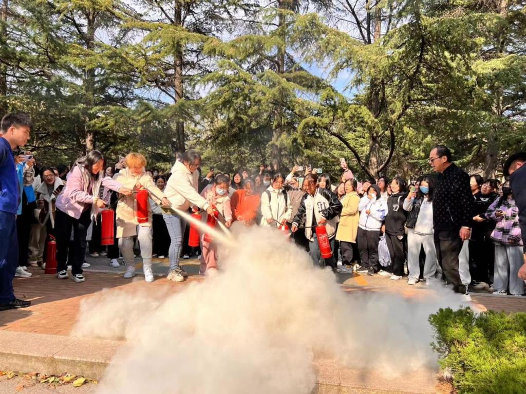 青島市澳門路消防大隊的消防員們受邀為我校學生講解消防安全逃生技能、滅火器使用等安全注意事項并現場開展了消防知識培訓。演練分為疏散逃生環節以及滅火實訓環節。