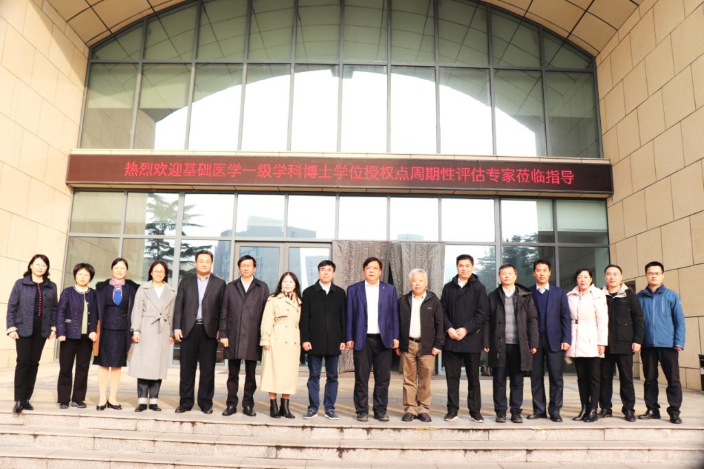 會議邀請國務院學位委員會基礎醫學學科評議組成員和基礎醫學學科領域專家入校進行合格評估,專家組成員由上海交通大學程金科教授、北京大學王韻教授、四川大學黃燦華教授、天津醫科大學余鷹教授、蘇州大學徐廣銀教授、山東大學高成江教授、哈爾濱醫科大學潘振偉教授組成。