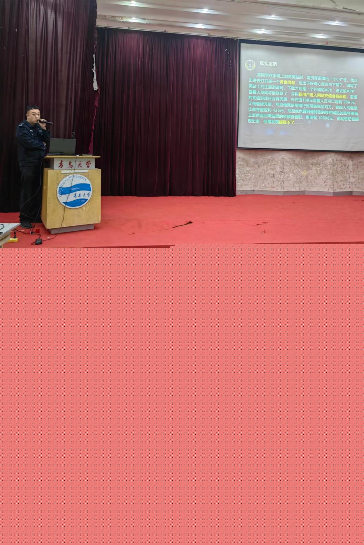 羅辰通過近幾年高校電信網(wǎng)絡詐騙的常見的詐騙類型等方面內(nèi)容展開講解。結(jié)合他豐富的反詐騙經(jīng)驗、專業(yè)的反詐騙知識以及真實典型的事例,為同學們普及科學的防范電信網(wǎng)絡詐騙的知識。羅警官就防范電信網(wǎng)絡詐騙向同學們提出七點建議:一是不要輕易下載登錄不良網(wǎng)站;二是不要貪圖小利;三是有問題自己親自到有關(guān)部門走一趟核實一下情況;四是遇到“緊急情況”,不要慌張,先冷靜下來,想清楚弄明白了再行動;五是注意避免個人資料外泄;六是不要隨便點擊網(wǎng)站中的廣告鏈接。