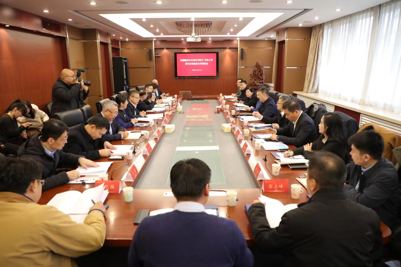 新聞網訊 12月14日,我校與新疆維吾爾自治區司法廳工作對接會在辦公樓會議室召開。校黨委副書記肖江南出席會議并講話。新疆維吾爾自治區司法廳黨委書記、副廳長劉建勝,黨委委員、副廳長譚磊,新疆司法警官職業學院校長金箴,新疆律師行業黨委副書記、新疆律師協會會長耿寶建,青島大學特聘教授、最高院國際商事專家委員會委員王瀚出席會議。