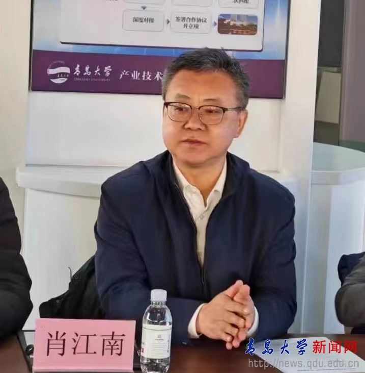 肖江南對客人一行表示熱烈歡迎。他在致辭中介紹了我校在學科發展、師資隊伍、人才培養、成果轉化等方面取得的成果。他表示,學校高度重視科研成果轉化工作,為有效解決科學研究與企業需求相融合相匹配問題,成立了青島大學產業技術研究院,產研院按照“前店后廠”建院理念,積極發揮成果展示、直播路演、項目推介、需求對接、人才培養、數據查詢等功能作用,打通科技成果從供給側到需求端的痛點堵點,打造青島大學科技創新及成果轉化新窗口、新平臺,助力青島大學學科發展;他希望青島大學與西海岸新區加強碰撞交流、精準匹配、有機融合,進一步加大科技成果轉化力度,賦能西海岸新區產業發展。