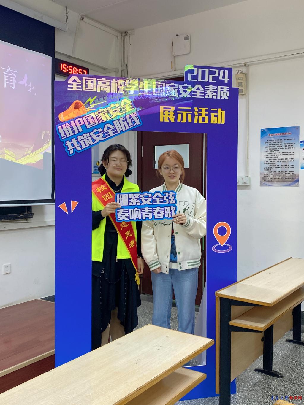 在“國家安全知多少”主題知識問答環節時,同學們踴躍答題,通過橫幅簽名的方式寫下了“有國才有家,國家安全靠大家”的莊嚴承諾。活動組織單位向有獎問答活動中表現突出的安全員頒發了獎品,向安全員們發放了反邪教宣傳掛圖、國家安全宣傳資料。