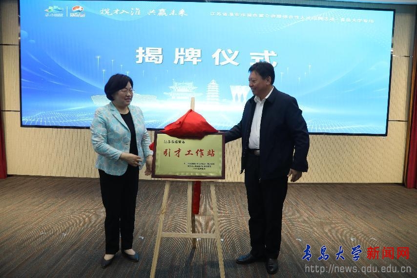 陳濤和王向紅為“淮安市引才工作站”揭牌。