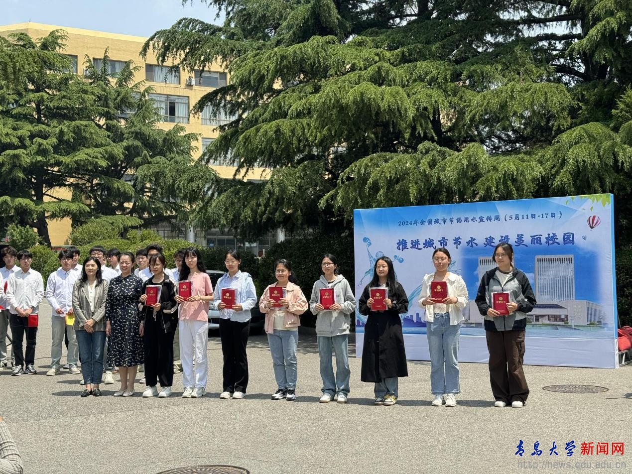 學(xué)校始終堅(jiān)持“節(jié)水優(yōu)先”理念,運(yùn)用智能方式做好水資源的節(jié)約管理,搭建節(jié)能實(shí)踐育人平臺(tái),在全校師生中形成了“節(jié)水我們一起做”的共識(shí),節(jié)水意識(shí)深入人心,獲得“青島市節(jié)水先鋒學(xué)校志愿隊(duì)”稱號(hào)。王靜為環(huán)境科學(xué)與工程學(xué)院學(xué)生黨支部授志愿隊(duì)隊(duì)旗,學(xué)生代表宣讀《節(jié)水倡議書》,盧正波等為積極參與山東省水利廳、教育廳舉辦的節(jié)水主題PPT課件征集活動(dòng)的學(xué)生頒獎(jiǎng),音樂學(xué)院學(xué)生齊聲演唱歌曲《節(jié)水中國》,將活動(dòng)現(xiàn)場(chǎng)氛圍推向高潮。