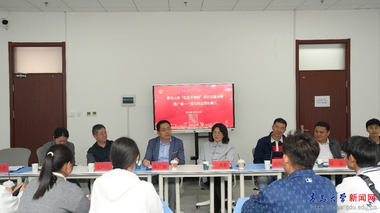 最后,陳廣保、張海波、張磊、陳桂林一行參加“校友開講啦”主題講座。陳廣保作為主講嘉賓,并圍繞其求學經歷、國外經歷、創業經歷以及目前情況等方面為參會的同學們做了精彩分享。他表示,做正確的事和正確做事是走向成功的兩大要義,熱愛是做事的開始,堅持是成功的原因,希望母校廣大學子能夠積極學好專業課知識,未來努力成為堪當大任的時代新人。