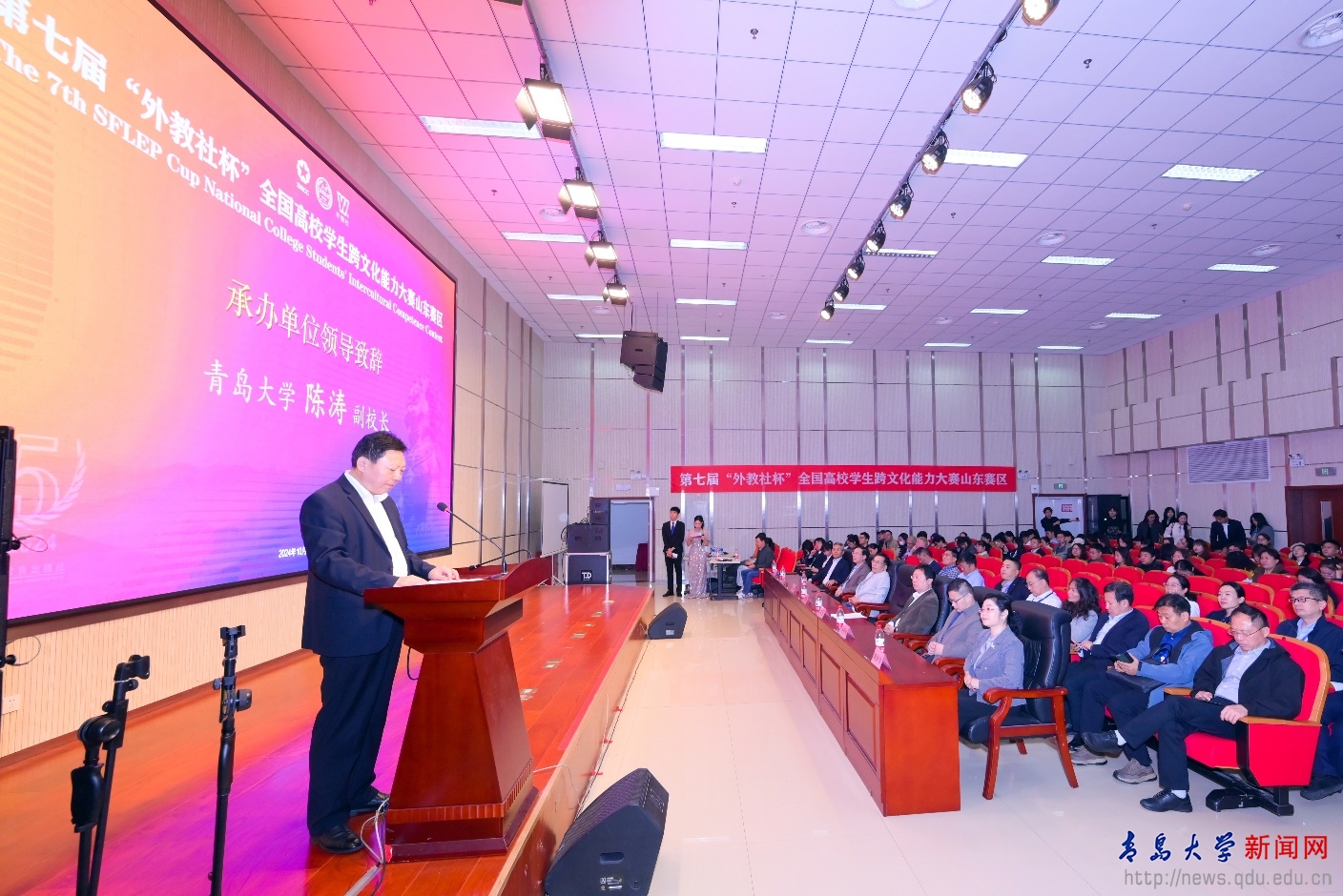 新聞網訊 第七屆“外教社杯”全國高校學生跨文化能力大賽(本科院校組)山東賽區復賽和決賽于2024年10月26日至27日在我校成功舉辦,校黨委常委、副校長陳濤出席活動。