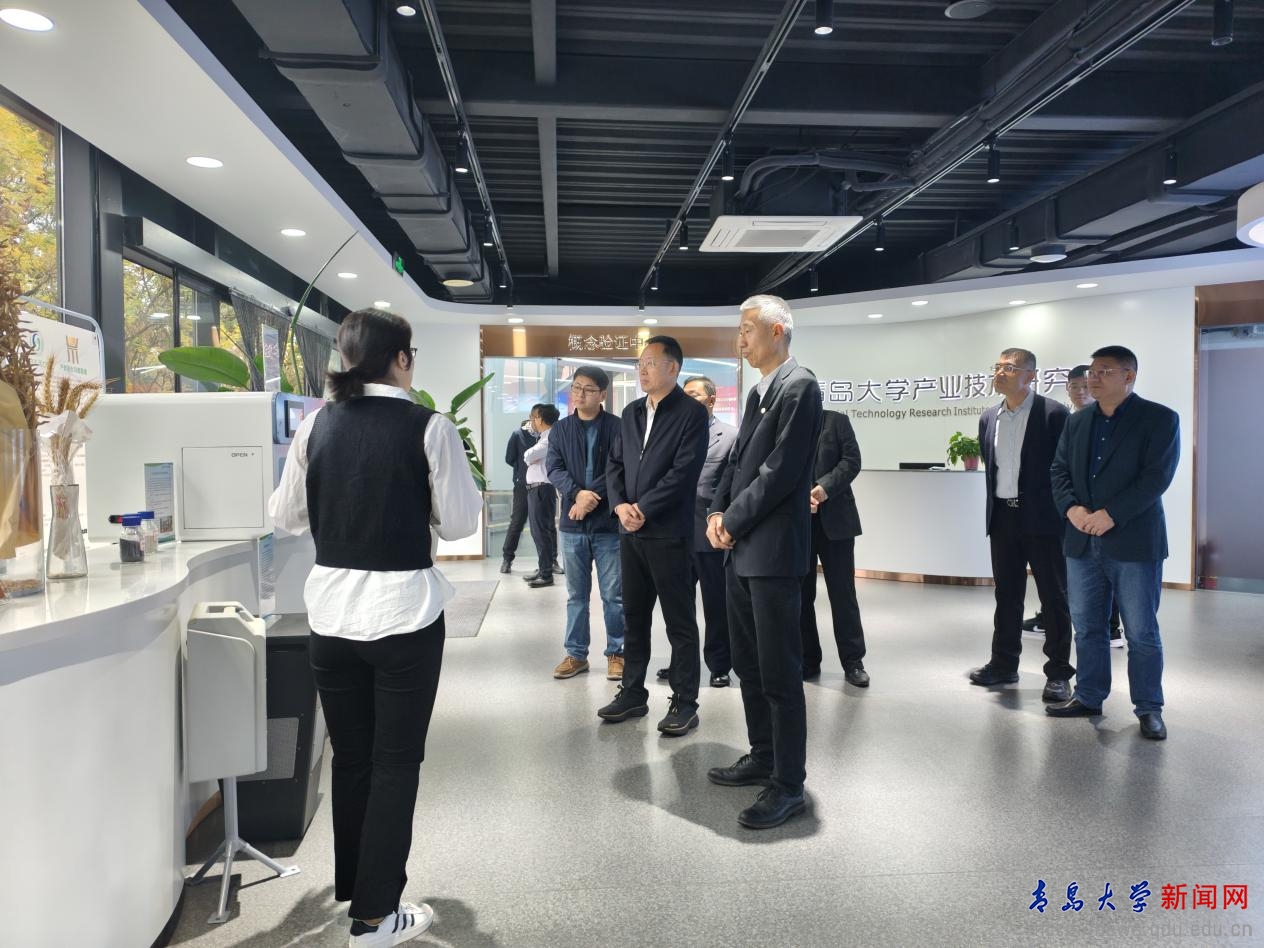 新聞網訊 11月14日上午,中國檢驗認證集團山東有限公司黨委委員、副總經理倪新一行到產業技術研究院調研,校黨委常委、副校長劉恩賢陪同參觀展廳并主持座談會,科研成果轉化中心主任、產業技術研究院執行院長鮑文勝陪同活動。