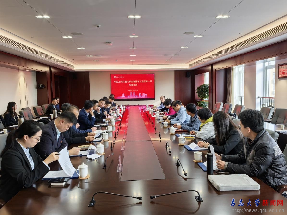 新聞網訊 11月18日下午,上海交通大學生物醫學工程學院一行來青島醫學院訪問交流,座談會在會議中心302會議室舉辦。上海交通大學原副校長、醫學科學院學部委員、講席教授徐學敏,校黨委常委、副校長牛海濤出席座談會,會議由青島醫學院院長任賀主持。