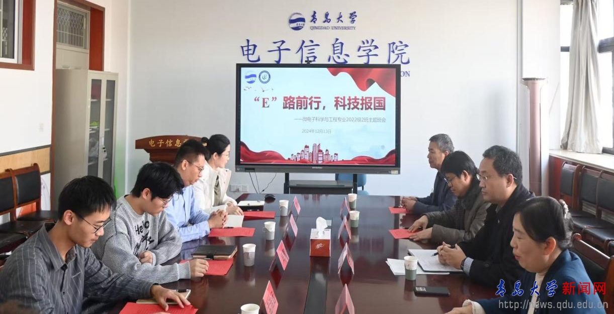 新聞網訊 為打造“雙創”育人新生態,構建科技育人新機制。12月13日上午,校黨委常委、副校長李建波在誠思樓407會議室參加電子信息學院微電子科學與工程專業2022級2班“提升創新創造素養,助力科技報國夢想”主題班會,與學院師生共同探討如何通過科技創新競賽和創新實踐項目,更好地培養面向未來的卓越創新人才。主題班會由電子信息學院黨委書記孫麗娜主持。