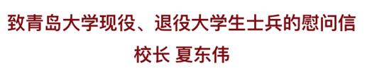 希望你們退役復(fù)學(xué)重返校園期間,卸肩章而不卸擔(dān)當(dāng),退戎裝卻不退榮光,主動(dòng)加入“青島大學(xué)青核先鋒營(yíng)”,繼續(xù)傳承好部隊(duì)優(yōu)良作風(fēng),充分發(fā)揮在行為養(yǎng)成教育、國(guó)防教育、愛國(guó)主義教育和社會(huì)主義核心價(jià)值觀教育中的模范帶頭作用,自覺成為學(xué)校征兵入伍宣導(dǎo)員、家國(guó)情懷引導(dǎo)員、軍事訓(xùn)練指導(dǎo)員、國(guó)防教育教導(dǎo)員、舍風(fēng)舍紀(jì)督導(dǎo)員和國(guó)旗儀式的護(hù)導(dǎo)員。用你們的投筆從戎的報(bào)國(guó)之志、百煉成鋼的執(zhí)著與堅(jiān)韌、令行禁止的執(zhí)行和擔(dān)當(dāng),秉承“明德、博學(xué)、守正、出奇”的校訓(xùn)精神,為廣大學(xué)子樹立愛國(guó)報(bào)國(guó)、爭(zhēng)優(yōu)創(chuàng)優(yōu)的好榜樣!